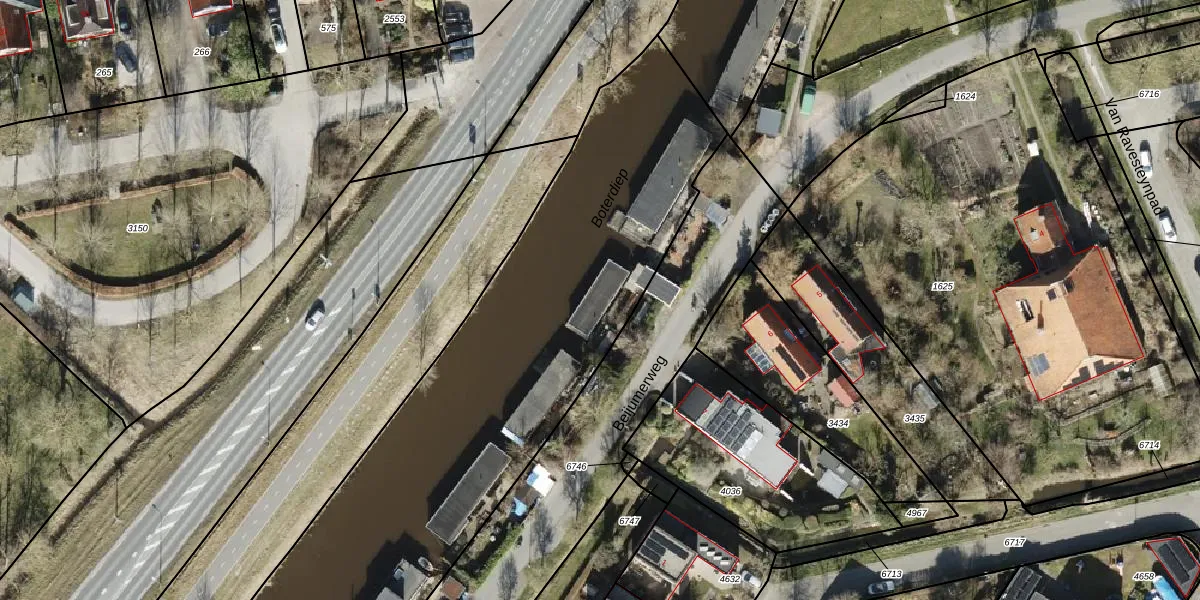 Het adres ligt op het perceel GNG01-AC-3148, dat zich in de kadastrale gemeente Groningen bevindt. Het perceel is met 4395 m² relatief groot. Het gemiddelde ligt in de kadastrale gemeente Groningen op 2461,56 m². De grootste perceeloppervlakte in de kadastrale gemeente is 1,25 km². De kleinste oppervlakte bedraagt 0 m². Op het perceel liggen in totaal 10 adressen. De laatste wijziging in het de Basisregistratie Kadaster (BRK) was op 18-08-2008.