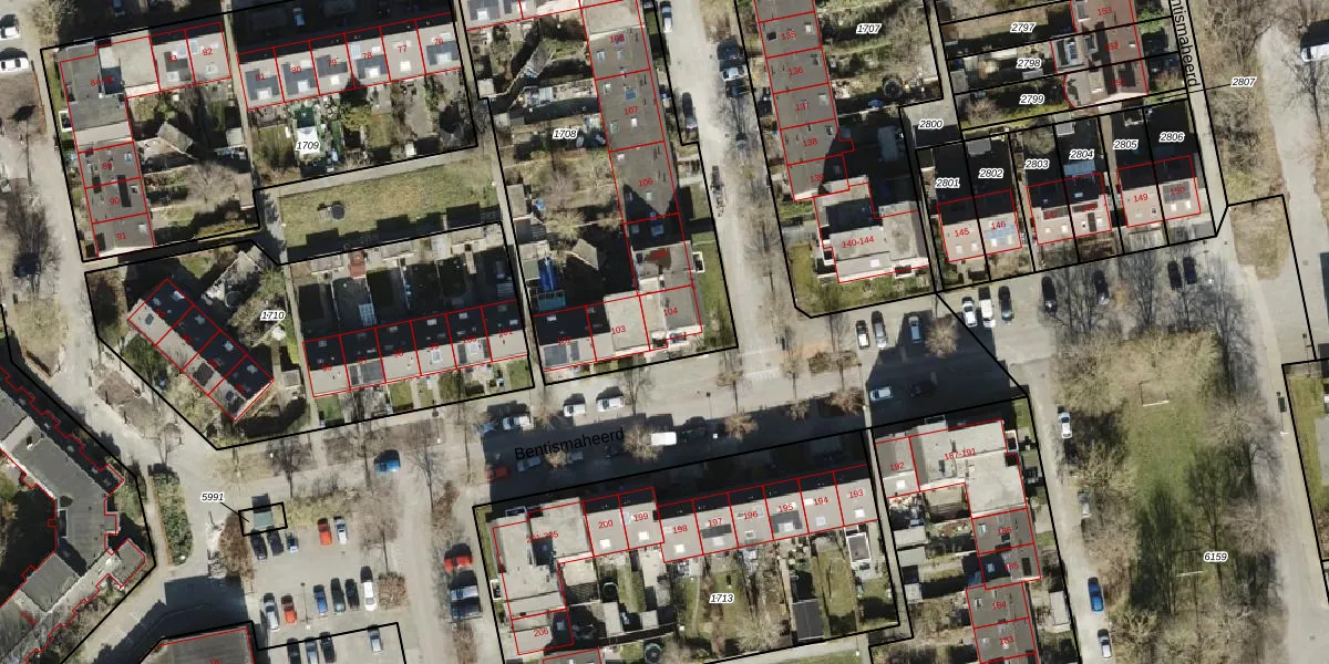 Bentismaheerd 104 is gelegen op kadastraal perceel GNG01AB1708. Deze kadastrale aanduiding is uniek en wordt gebruikt door het Kadaster om eigendomsrechten en andere zakelijke rechten vast te leggen. Het perceel maakt onderdeel uit van de kadastrale gemeente Groningen.