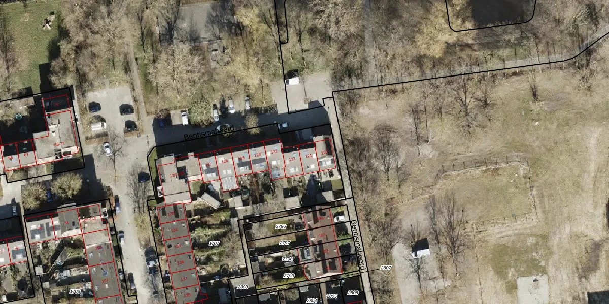 Bentismaheerd 121 is gelegen op kadastraal perceel GNG01AB1707. Deze kadastrale aanduiding is uniek en wordt gebruikt door het Kadaster om eigendomsrechten en andere zakelijke rechten vast te leggen. Het perceel maakt onderdeel uit van de kadastrale gemeente Groningen.