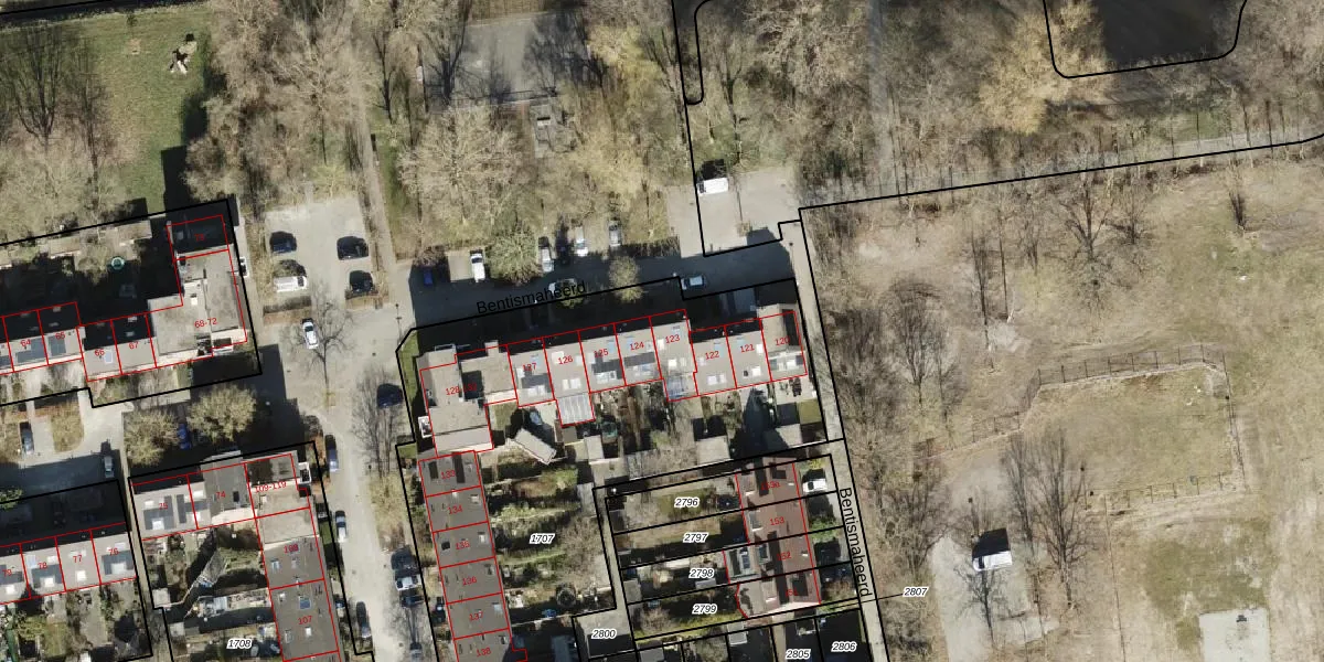 Het perceel waarop Bentismaheerd 123 staat heeft een oppervlakte van 2849 m². Dit is een zeer groot perceel. De perceeloppervlakte wordt geregistreerd door het Kadaster. Gedetailleerde informatie over de maten van dit perceel kunt u vinden in het rapport Kadastrale kaart met maatvoering van Bentismaheerd 123.