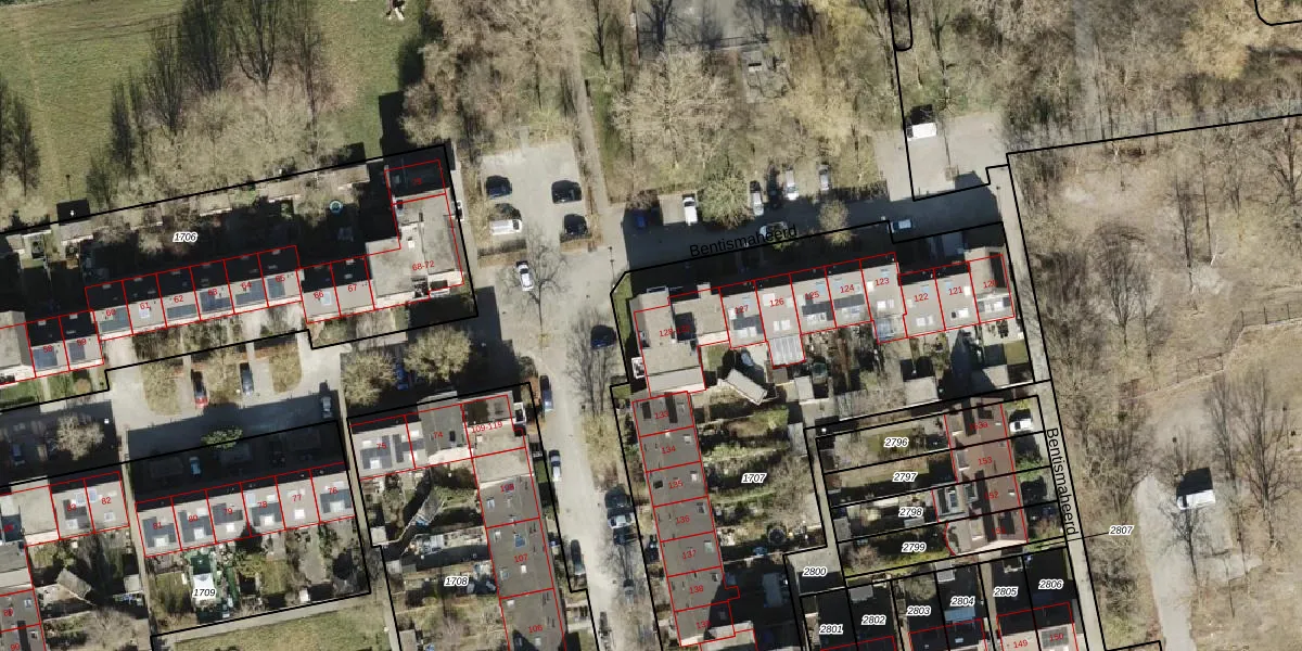 Het perceel waarop Bentismaheerd 128 staat heeft een oppervlakte van 2849 m². Dit is een zeer groot perceel. De perceeloppervlakte wordt geregistreerd door het Kadaster. Gedetailleerde informatie over de maten van dit perceel kunt u vinden in het rapport Kadastrale kaart met maatvoering van Bentismaheerd 128.