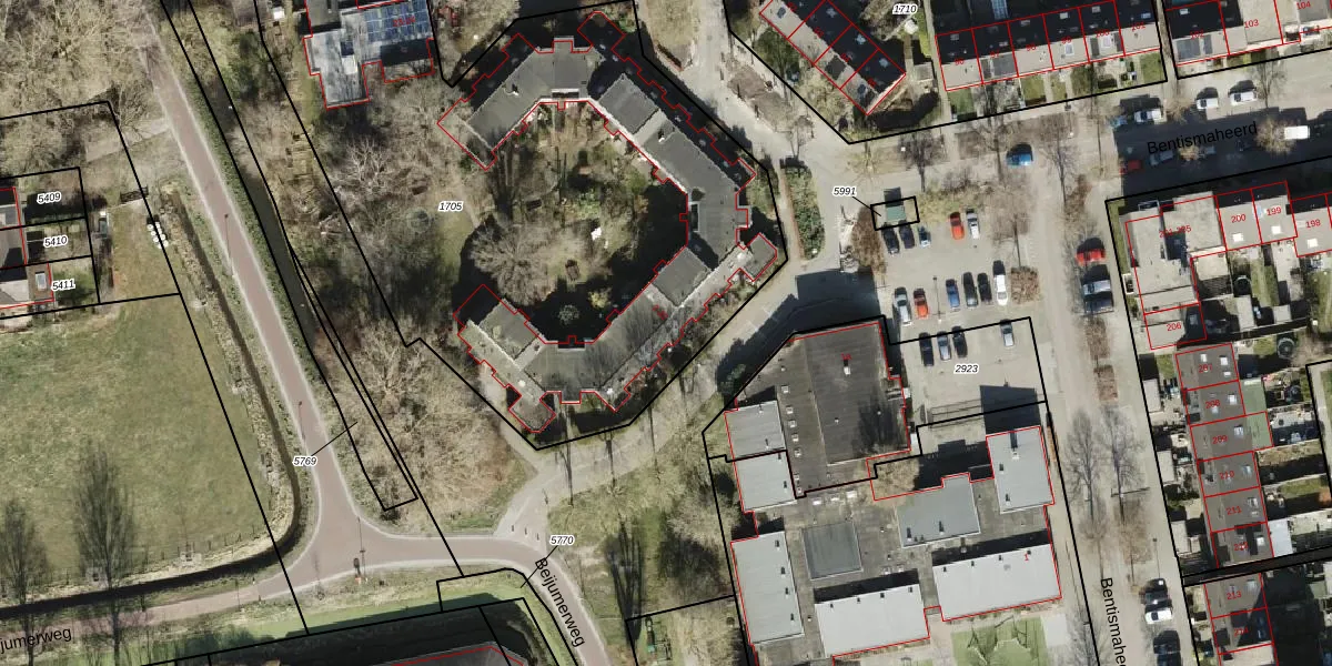 Het perceel waarop Bentismaheerd 17 staat heeft een oppervlakte van 6531 m². Dit is een zeer groot perceel. De perceeloppervlakte wordt geregistreerd door het Kadaster. Gedetailleerde informatie over de maten van dit perceel kunt u vinden in het rapport Kadastrale kaart met maatvoering van Bentismaheerd 17.