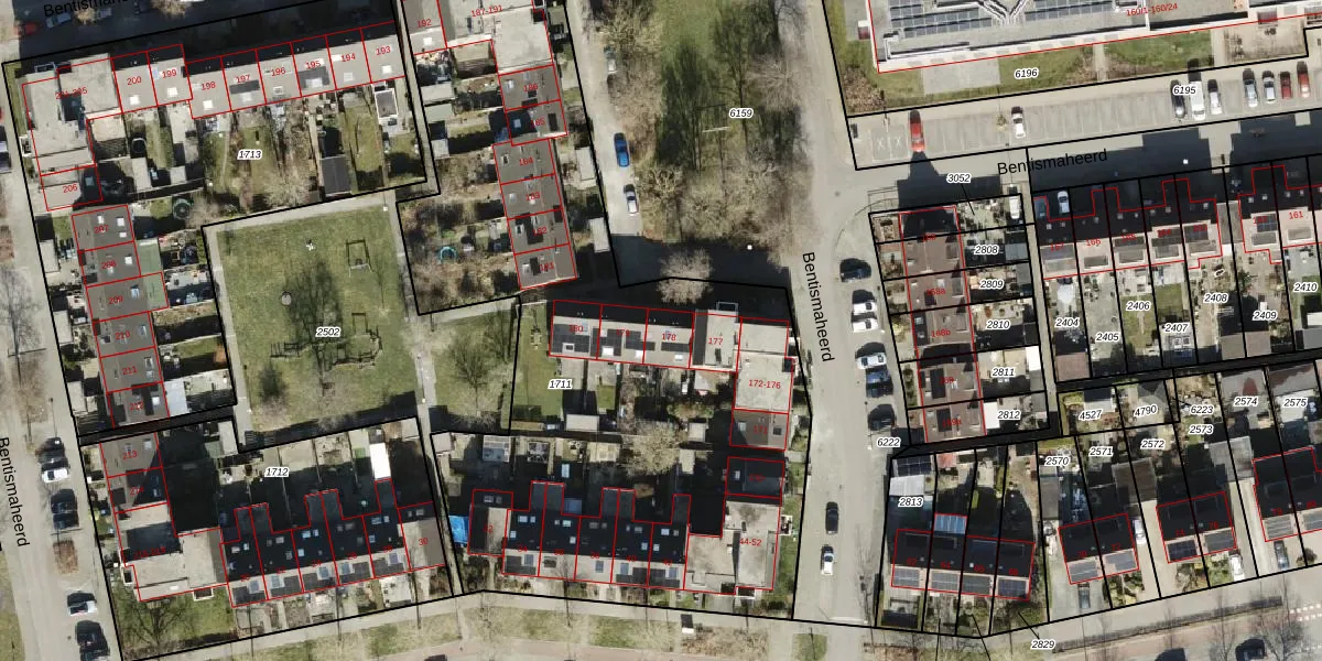 Bentismaheerd 178 is gelegen op kadastraal perceel GNG01AB1711. Deze kadastrale aanduiding is uniek en wordt gebruikt door het Kadaster om eigendomsrechten en andere zakelijke rechten vast te leggen. Het perceel maakt onderdeel uit van de kadastrale gemeente Groningen.
