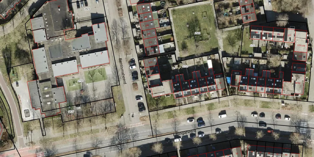 Het perceel waarop Bentismaheerd 216 staat heeft een oppervlakte van 1550 m². Dit is een zeer groot perceel. De perceeloppervlakte wordt geregistreerd door het Kadaster. Gedetailleerde informatie over de maten van dit perceel kunt u vinden in het rapport Kadastrale kaart met maatvoering van Bentismaheerd 216.