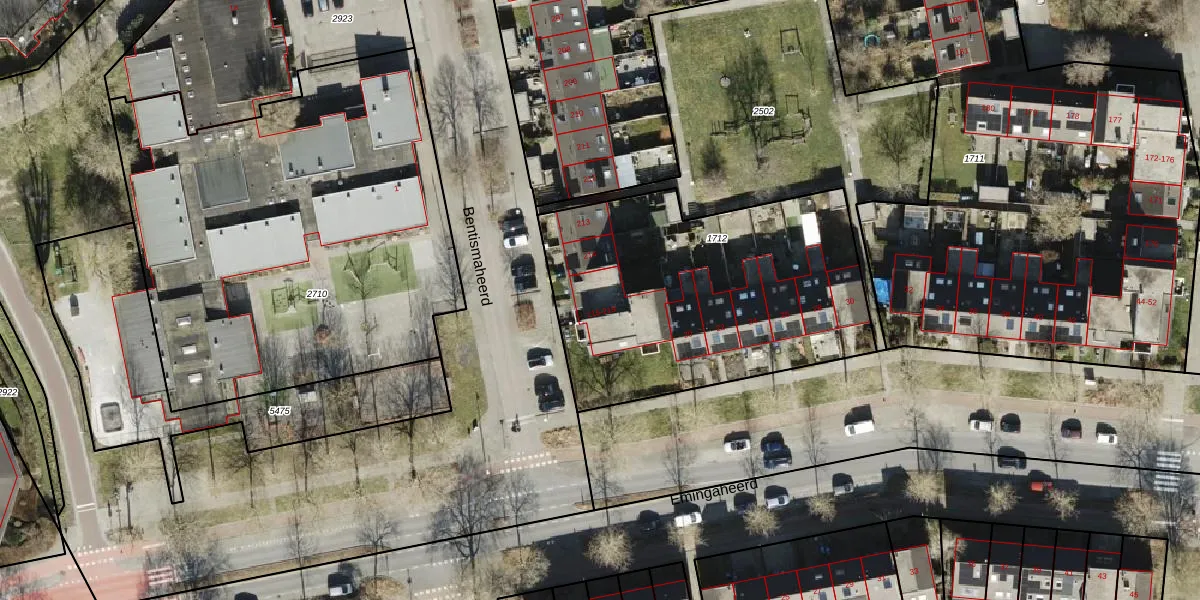 Het perceel waarop Bentismaheerd 217 staat heeft een oppervlakte van 1550 m². Dit is een zeer groot perceel. De perceeloppervlakte wordt geregistreerd door het Kadaster. Gedetailleerde informatie over de maten van dit perceel kunt u vinden in het rapport Kadastrale kaart met maatvoering van Bentismaheerd 217.