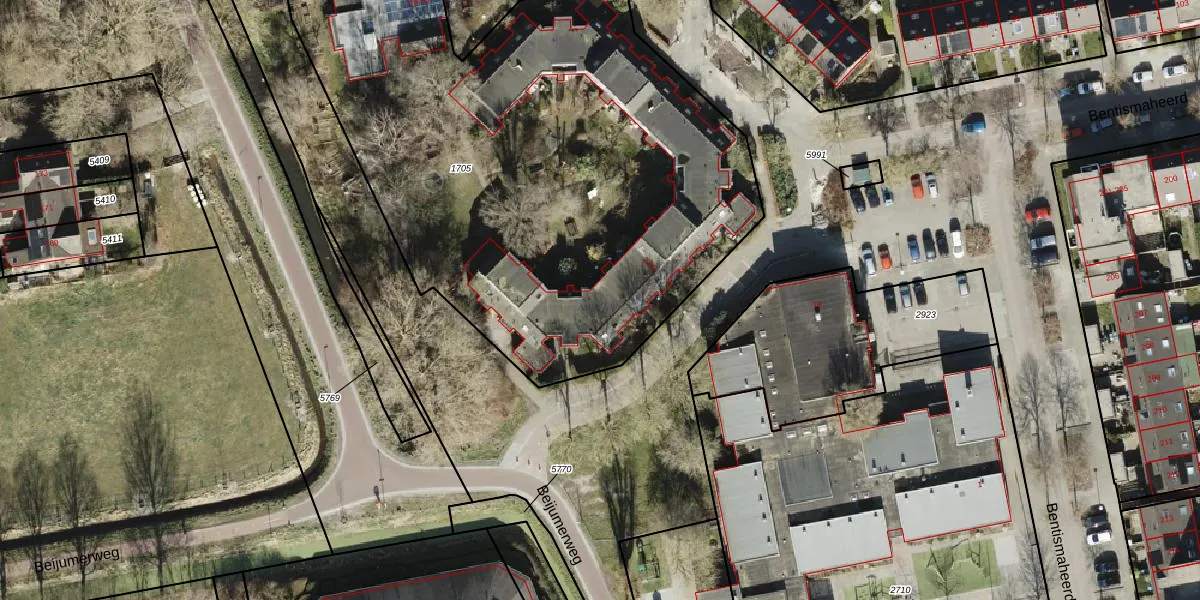 Het perceel waarop Bentismaheerd 22 staat heeft een oppervlakte van 6531 m². Dit is een zeer groot perceel. De perceeloppervlakte wordt geregistreerd door het Kadaster. Gedetailleerde informatie over de maten van dit perceel kunt u vinden in het rapport Kadastrale kaart met maatvoering van Bentismaheerd 22.