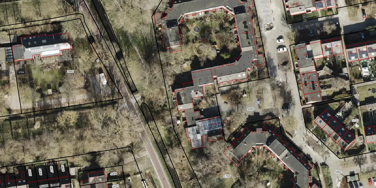 Het perceel waarop het adres ligt is GNG01-AB-1705. De afkorting 'GNG01' staat voor kadastrale gemeente Groningen. De gemiddelde perceeloppervlakte in de kadastrale gemeente Groningen is 2464,69 m². Dit perceel is met zijn 6531 m² dus groter dan gemiddeld. Het grootste perceel in de kadastrale gemeente is 1,26 km². Het kleinste perceel heeft een oppervlakte van 0 m². Op het perceel zijn 47 adressen aanwezig. In de Basisregistratie Kadaster (BRK) werden de grenzen van het perceel geregistreerd op 10-06-2008.
