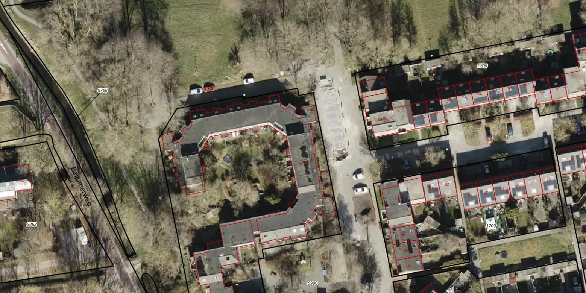 Het perceel waarop het adres ligt is GNG01-AB-1705. De afkorting 'GNG01' staat voor kadastrale gemeente Groningen. De gemiddelde perceeloppervlakte in de kadastrale gemeente Groningen is 2464,69 m². Dit perceel is met zijn 6531 m² dus groter dan gemiddeld. De grootste perceeloppervlakte in de kadastrale gemeente is 1,26 km². De kleinste oppervlakte bedraagt 0 m². Op het perceel liggen in totaal 47 adressen. De huidige grenzen van het perceel zijn digitaal in de Basisregistratie Kadaster (BRK) geregistreerd op 10-06-2008.