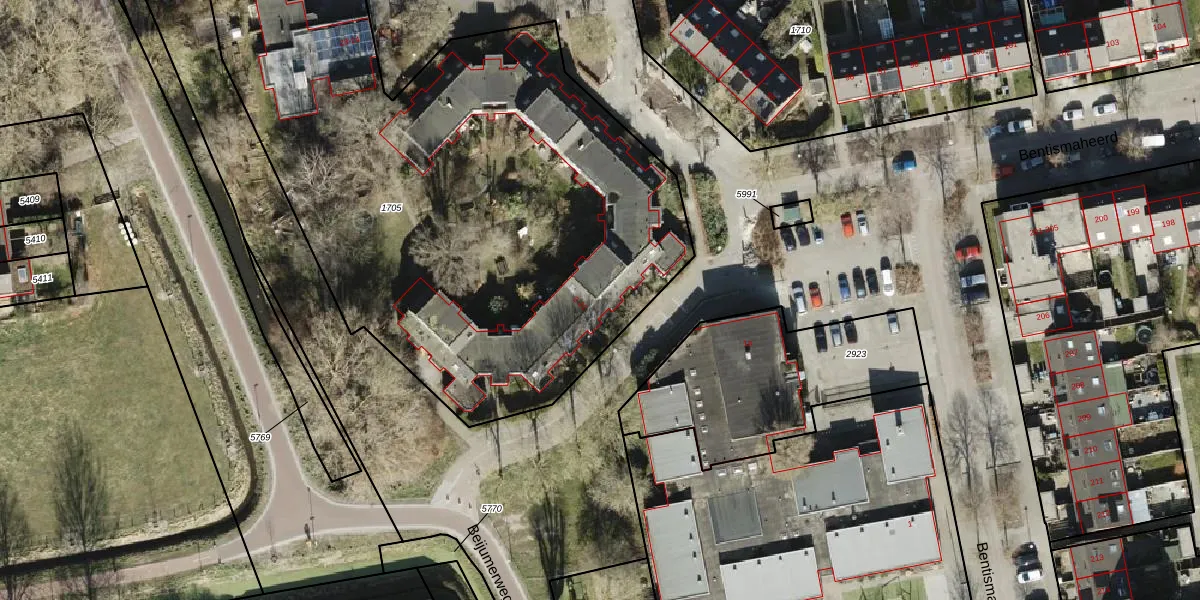 Bentismaheerd 9 is gelegen op kadastraal perceel GNG01AB1705. Deze kadastrale aanduiding is uniek en wordt gebruikt door het Kadaster om eigendomsrechten en andere zakelijke rechten vast te leggen. Het perceel maakt onderdeel uit van de kadastrale gemeente Groningen.