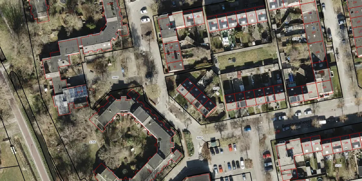 Bentismaheerd 92 is gelegen op kadastraal perceel GNG01AB1710. Deze kadastrale aanduiding is uniek en wordt gebruikt door het Kadaster om eigendomsrechten en andere zakelijke rechten vast te leggen. Het perceel maakt onderdeel uit van de kadastrale gemeente Groningen.