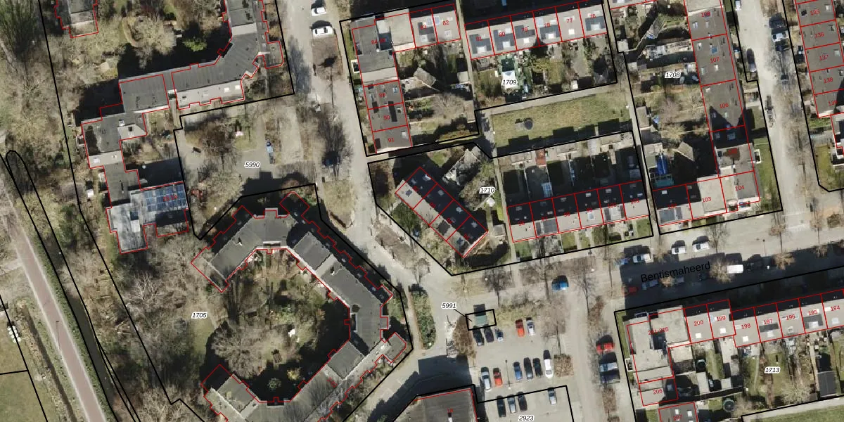 Bentismaheerd 93 is gelegen op kadastraal perceel GNG01AB1710. Deze kadastrale aanduiding is uniek en wordt gebruikt door het Kadaster om eigendomsrechten en andere zakelijke rechten vast te leggen. Het perceel maakt onderdeel uit van de kadastrale gemeente Groningen.