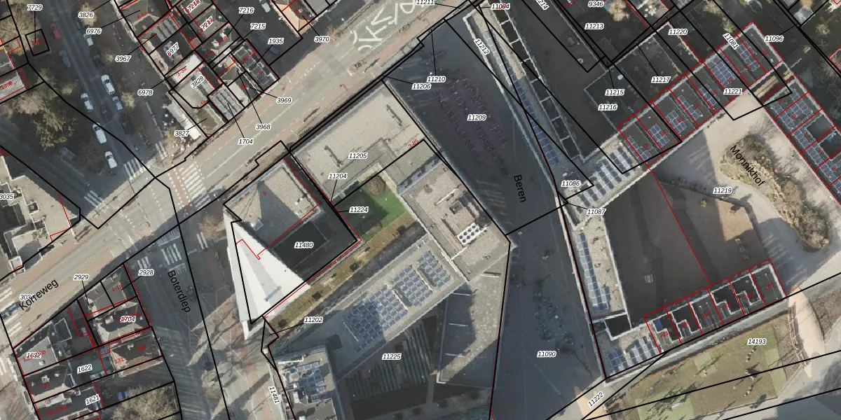 Het perceel waarop het adres ligt is GNG00-A-11225. De afkorting 'GNG00' staat voor kadastrale gemeente Groningen. De oppervlakte van het perceel is 3212 m². Dat is groter dan gemiddeld in Groningen, waar de gemiddelde perceeloppervlakte op 771,11 m² ligt. De grootste perceeloppervlakte in de kadastrale gemeente is 31,8 ha. De kleinste oppervlakte bedraagt 0 m². Op het perceel liggen in totaal 104 adressen. In de Basisregistratie Kadaster (BRK) werden de grenzen van het perceel geregistreerd op 07-04-2004.