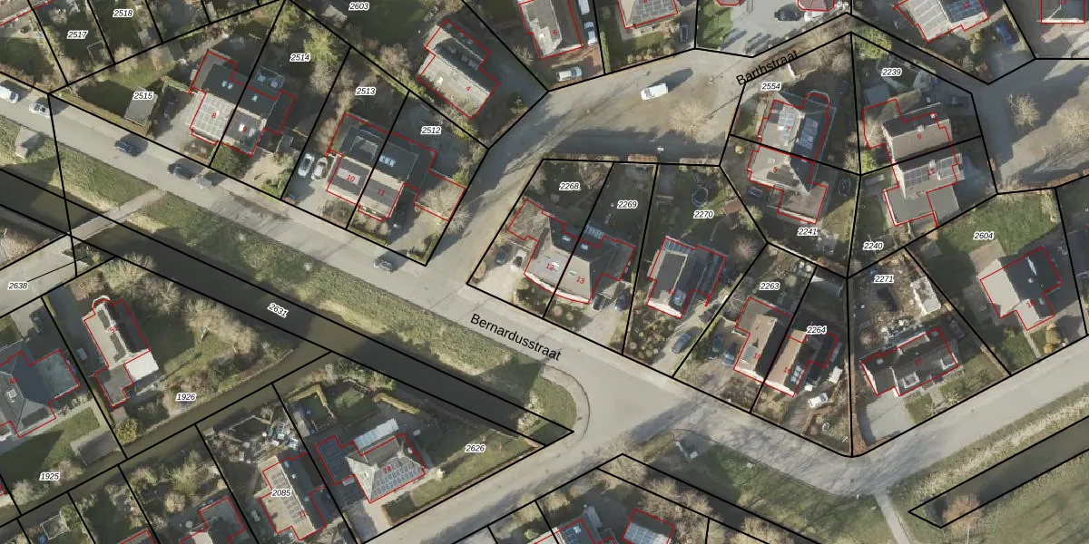Het perceel waarop Bernardusstraat 12 staat heeft een oppervlakte van 396 m². Dit is een groot perceel. De perceeloppervlakte wordt geregistreerd door het Kadaster. Gedetailleerde informatie over de maten van dit perceel kunt u vinden in het rapport Kadastrale kaart met maatvoering van Bernardusstraat 12.