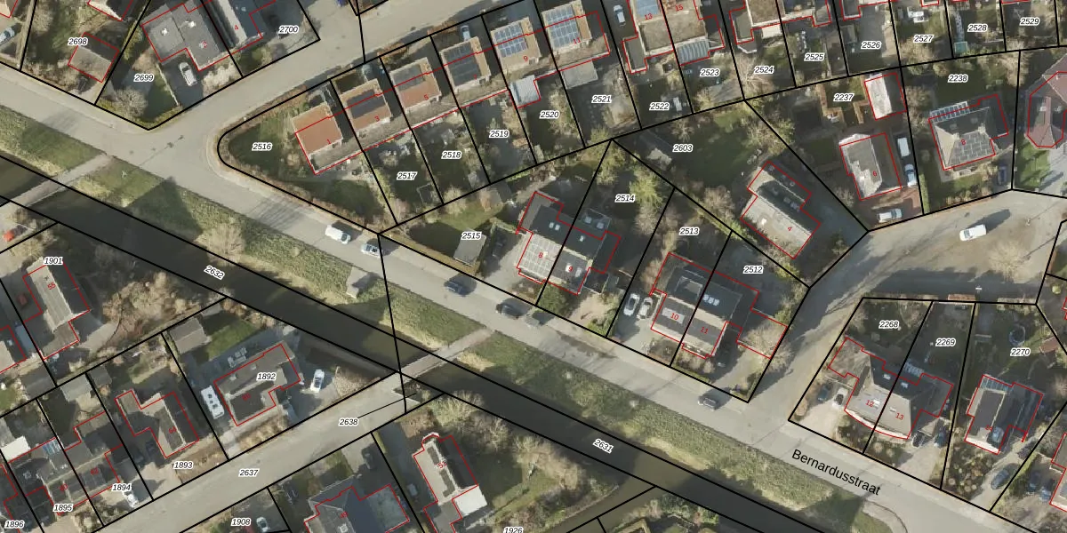 Bernardusstraat 8 is gelegen op kadastraal perceel HKK02A2515. Deze kadastrale aanduiding is uniek en wordt gebruikt door het Kadaster om eigendomsrechten en andere zakelijke rechten vast te leggen. Het perceel maakt onderdeel uit van de kadastrale gemeente Hoogkerk.
