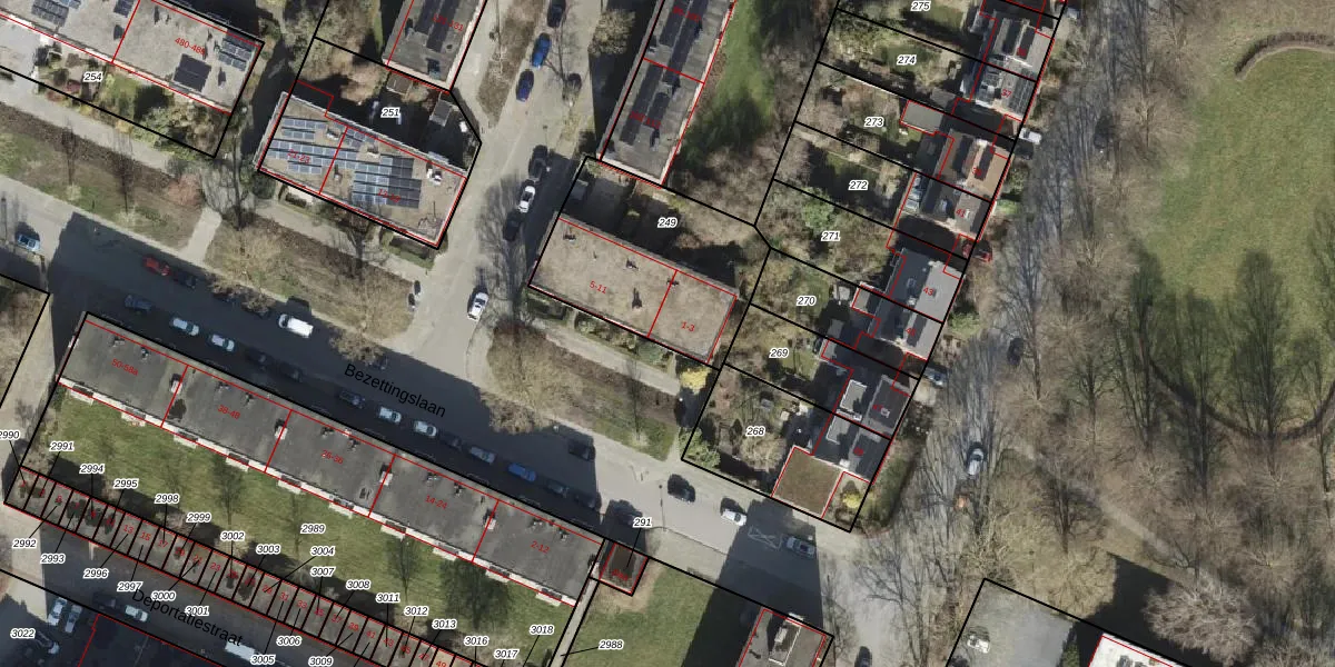 Het perceel waarop Bezettingslaan 1 staat heeft een oppervlakte van 669 m². Dit is een groot perceel. De perceeloppervlakte wordt geregistreerd door het Kadaster. Gedetailleerde informatie over de maten van dit perceel kunt u vinden in het rapport Kadastrale kaart met maatvoering van Bezettingslaan 1.
