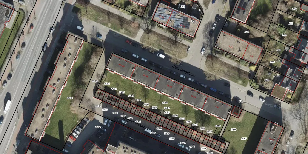 Het perceel waarop Bezettingslaan 42 staat heeft een oppervlakte van 2117 m². Dit is een zeer groot perceel. De perceeloppervlakte wordt geregistreerd door het Kadaster. Gedetailleerde informatie over de maten van dit perceel kunt u vinden in het rapport Kadastrale kaart met maatvoering van Bezettingslaan 42.