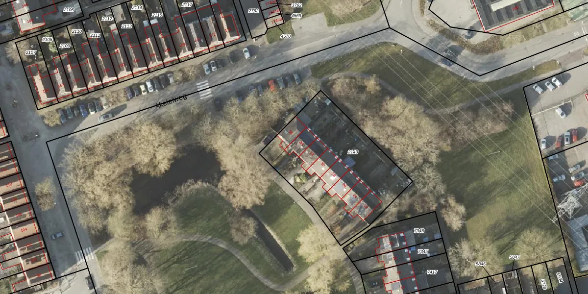 Het adres ligt op het perceel GNG01-AC-2143, dat zich in de kadastrale gemeente Groningen bevindt. De gemiddelde perceelgrootte in Groningen is 2461,56 m². Dit perceel is kleiner: de perceeloppervlakte bedraagt 1335 m². De grootste perceeloppervlakte in de kadastrale gemeente is 1,25 km². De kleinste oppervlakte bedraagt 0 m². Op het perceel zijn 8 adressen aanwezig. In de Basisregistratie Kadaster (BRK) werden de grenzen van het perceel geregistreerd op 14-11-1997.