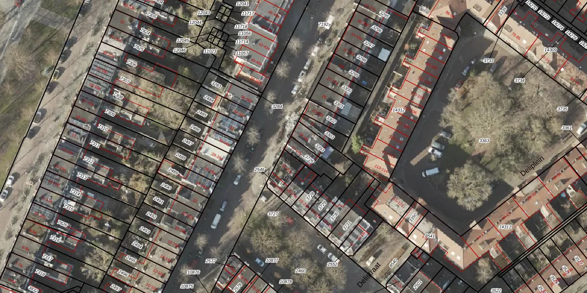 Het adres is gelegen op perceel 3726 in de sectie A en de kadastrale gemeente Groningen. De kadastrale aanduiding is aldus GNG00-A-3726. Het perceel is kleiner dan gemiddeld in Groningen. Het perceel is 96 m² groot, terwijl het gemiddelde ligt op 770,7 m². Het grootste perceel in de kadastrale gemeente is 31,8 ha. Het kleinste perceel heeft een oppervlakte van 0 m². Er zijn 3 adressen aanwezig op het perceel. De huidige grenzen van het perceel zijn digitaal in de Basisregistratie Kadaster (BRK) geregistreerd op 26-06-2003.