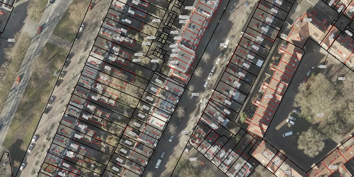 Het adres is gelegen op perceel 3283 in de sectie A en de kadastrale gemeente Groningen. De kadastrale aanduiding is aldus GNG00-A-3283. Het perceel is kleiner dan gemiddeld in Groningen. Het perceel is 112 m² groot, terwijl het gemiddelde ligt op 770,7 m². Het kleinste perceel in de kadastrale gemeente is 0 m² groot. De grootste perceeloppervlakte is 31,8 ha. Er zijn 3 adressen aanwezig op het perceel. De laatste wijziging in het de Basisregistratie Kadaster (BRK) was op 26-06-2003.
