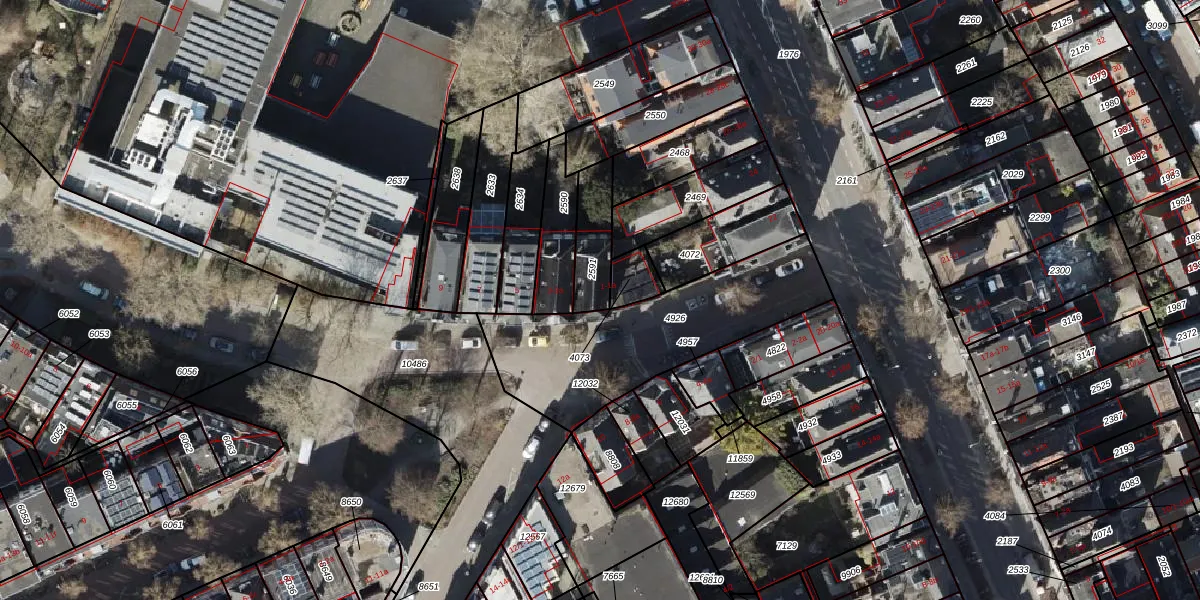 Het adres ligt op het perceel GNG00-K-2591, dat zich in de kadastrale gemeente Groningen bevindt. Het perceel is kleiner dan gemiddeld in Groningen. Het perceel is 145 m² groot, terwijl het gemiddelde ligt op 771,43 m². Het kleinste perceel in de kadastrale gemeente is 0 m² groot. De grootste perceeloppervlakte is 31,8 ha. Op het perceel zijn 2 adressen aanwezig. De huidige grenzen van het perceel zijn digitaal in de Basisregistratie Kadaster (BRK) geregistreerd op 20-06-2003.