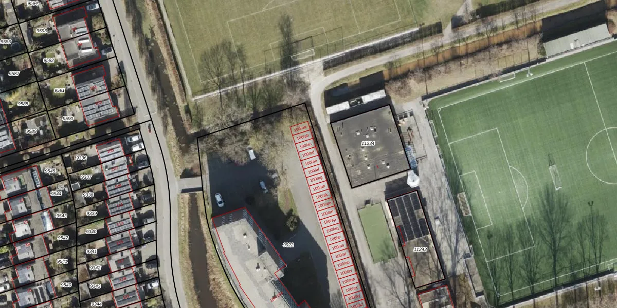 Het perceel waarop Bloemersmaborg 100-ad staat heeft een oppervlakte van 3284 m². Dit is een zeer groot perceel. De perceeloppervlakte wordt geregistreerd door het Kadaster. Gedetailleerde informatie over de maten van dit perceel kunt u vinden in het rapport Kadastrale kaart met maatvoering van Bloemersmaborg 100-ad.