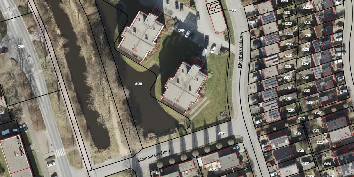 Het perceel waarop Bloemersmaborg 8 staat heeft een oppervlakte van 4653 m². Dit is een zeer groot perceel. De perceeloppervlakte wordt geregistreerd door het Kadaster. Gedetailleerde informatie over de maten van dit perceel kunt u vinden in het rapport Kadastrale kaart met maatvoering van Bloemersmaborg 8.