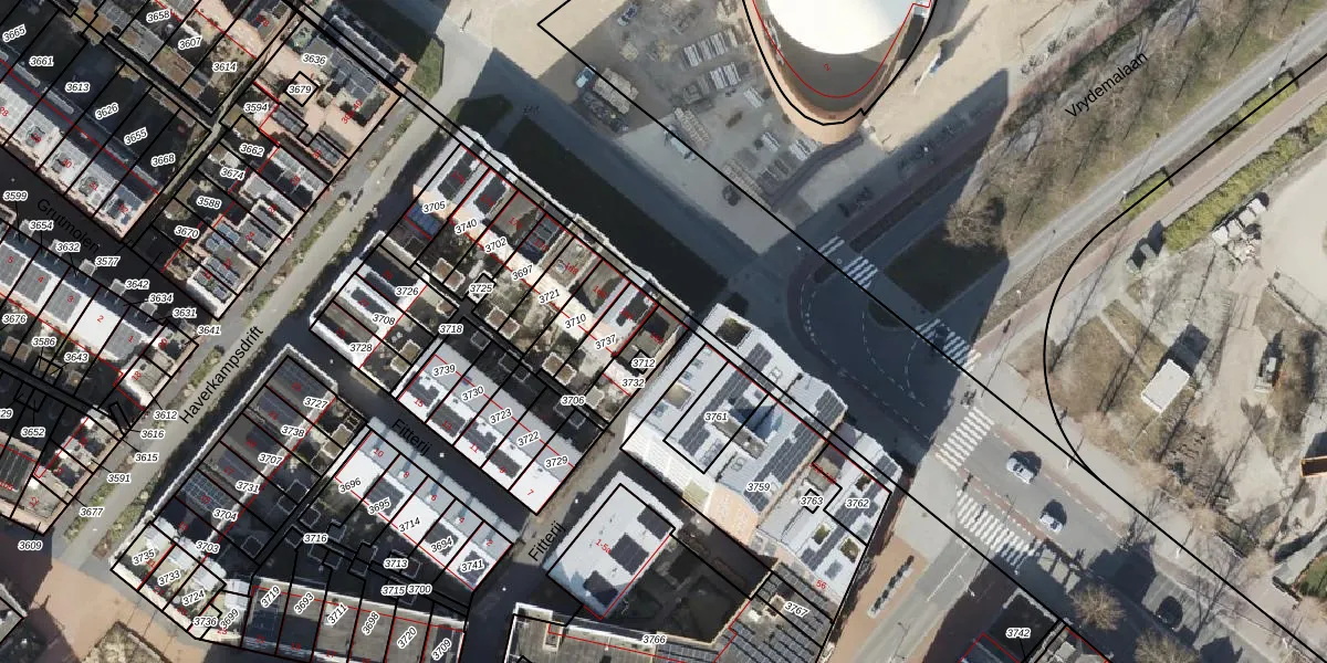 Gebruik de zoekbalk of klik op een perceel voor informatie over de adressen binnen dit perceel.