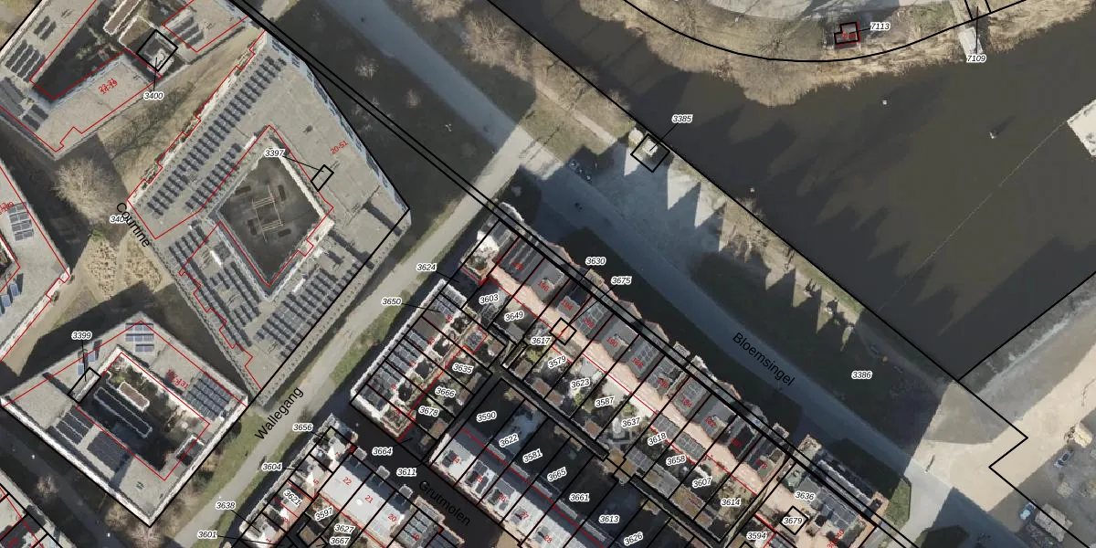 Gebruik de zoekbalk of klik op een perceel voor informatie over de adressen binnen dit perceel.