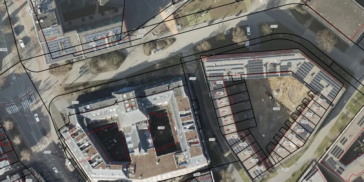 Het perceel waarop Bloemsingel 200 staat heeft een oppervlakte van 3150 m². Dit is een zeer groot perceel. De perceeloppervlakte wordt geregistreerd door het Kadaster. Gedetailleerde informatie over de maten van dit perceel kunt u vinden in het rapport Kadastrale kaart met maatvoering van Bloemsingel 200.