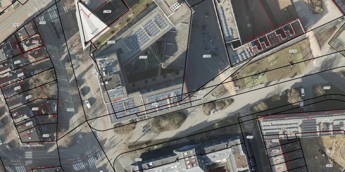 Het perceel waarop Bloemsingel 251 staat heeft een oppervlakte van 3212 m². Dit is een zeer groot perceel. De perceeloppervlakte wordt geregistreerd door het Kadaster. Gedetailleerde informatie over de maten van dit perceel kunt u vinden in het rapport Kadastrale kaart met maatvoering van Bloemsingel 251.