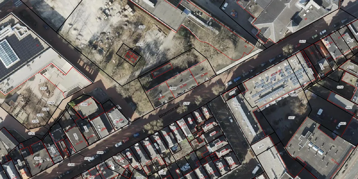Het perceel waarop Bloemstraat 32-b staat heeft een oppervlakte van 774 m². Dit is een groot perceel. De perceeloppervlakte wordt geregistreerd door het Kadaster. Gedetailleerde informatie over de maten van dit perceel kunt u vinden in het rapport Kadastrale kaart met maatvoering van Bloemstraat 32-b.