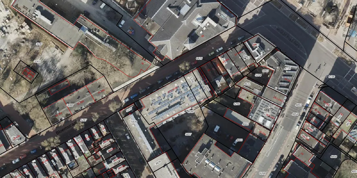 Het perceel waarop Bloemstraat 47-17 staat heeft een oppervlakte van 1854 m². Dit is een zeer groot perceel. De perceeloppervlakte wordt geregistreerd door het Kadaster. Gedetailleerde informatie over de maten van dit perceel kunt u vinden in het rapport Kadastrale kaart met maatvoering van Bloemstraat 47-17.
