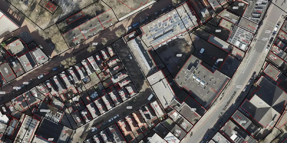 Het perceel waarop Bloemstraat 47-73 staat heeft een oppervlakte van 371 m². Dit is een groot perceel. De perceeloppervlakte wordt geregistreerd door het Kadaster. Gedetailleerde informatie over de maten van dit perceel kunt u vinden in het rapport Kadastrale kaart met maatvoering van Bloemstraat 47-73.
