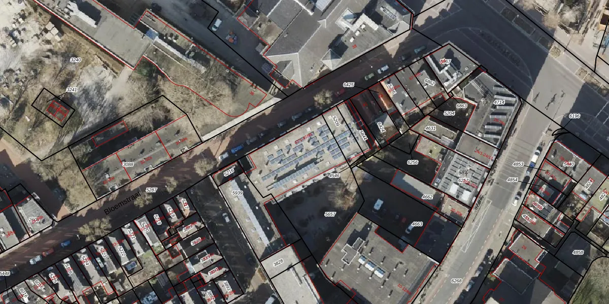 Het perceel waarop Bloemstraat 47-30 staat heeft een oppervlakte van 1854 m². Dit is een zeer groot perceel. De perceeloppervlakte wordt geregistreerd door het Kadaster. Gedetailleerde informatie over de maten van dit perceel kunt u vinden in het rapport Kadastrale kaart met maatvoering van Bloemstraat 47-30.