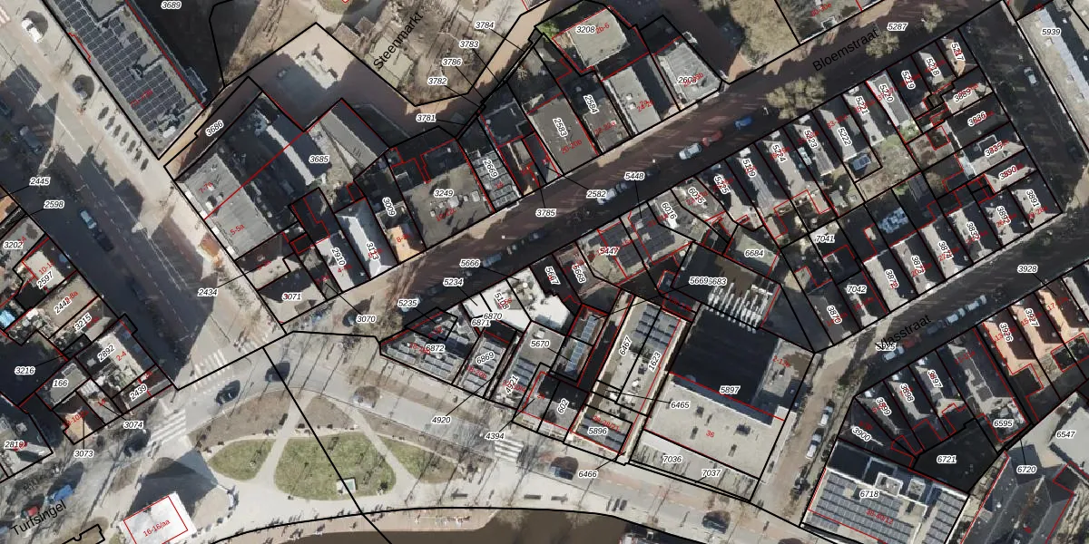 Het perceel waarop Bloemstraat 9 staat heeft een oppervlakte van 42 m². Dit is een klein perceel. De perceeloppervlakte wordt geregistreerd door het Kadaster. Gedetailleerde informatie over de maten van dit perceel kunt u vinden in het rapport Kadastrale kaart met maatvoering van Bloemstraat 9.