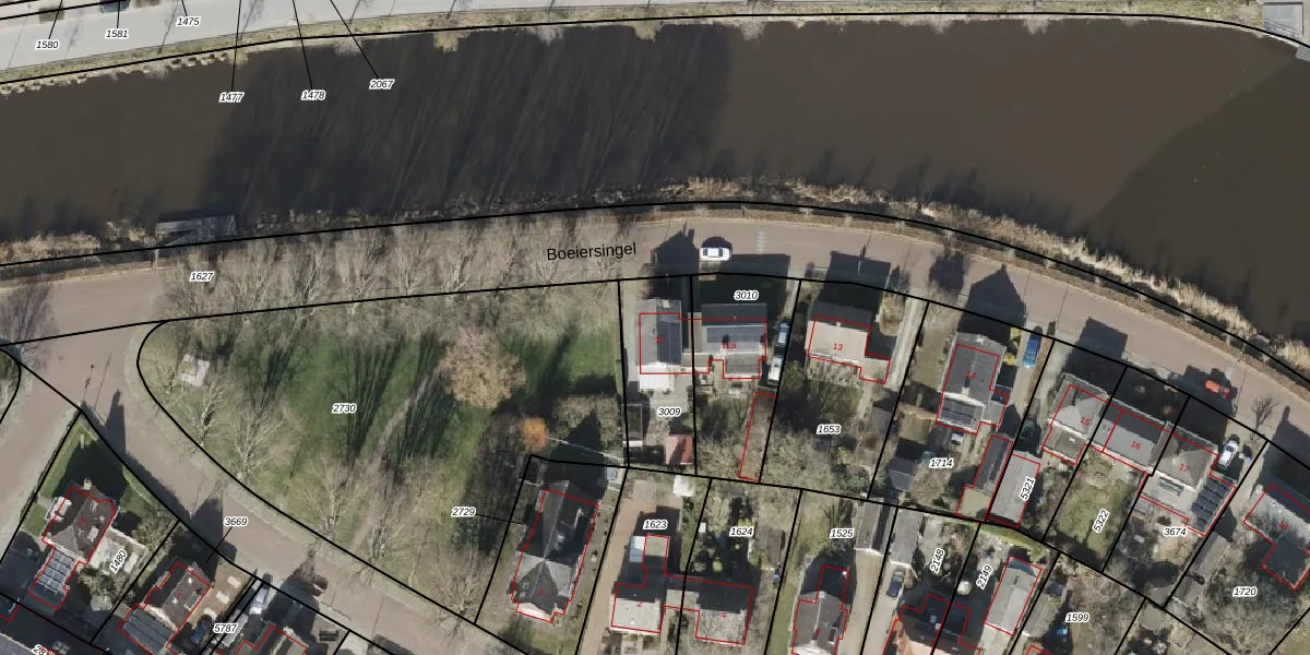 Boeiersingel 12 is gelegen op kadastraal perceel HKK02C3009. Deze kadastrale aanduiding is uniek en wordt gebruikt door het Kadaster om eigendomsrechten en andere zakelijke rechten vast te leggen. Het perceel maakt onderdeel uit van de kadastrale gemeente Hoogkerk.