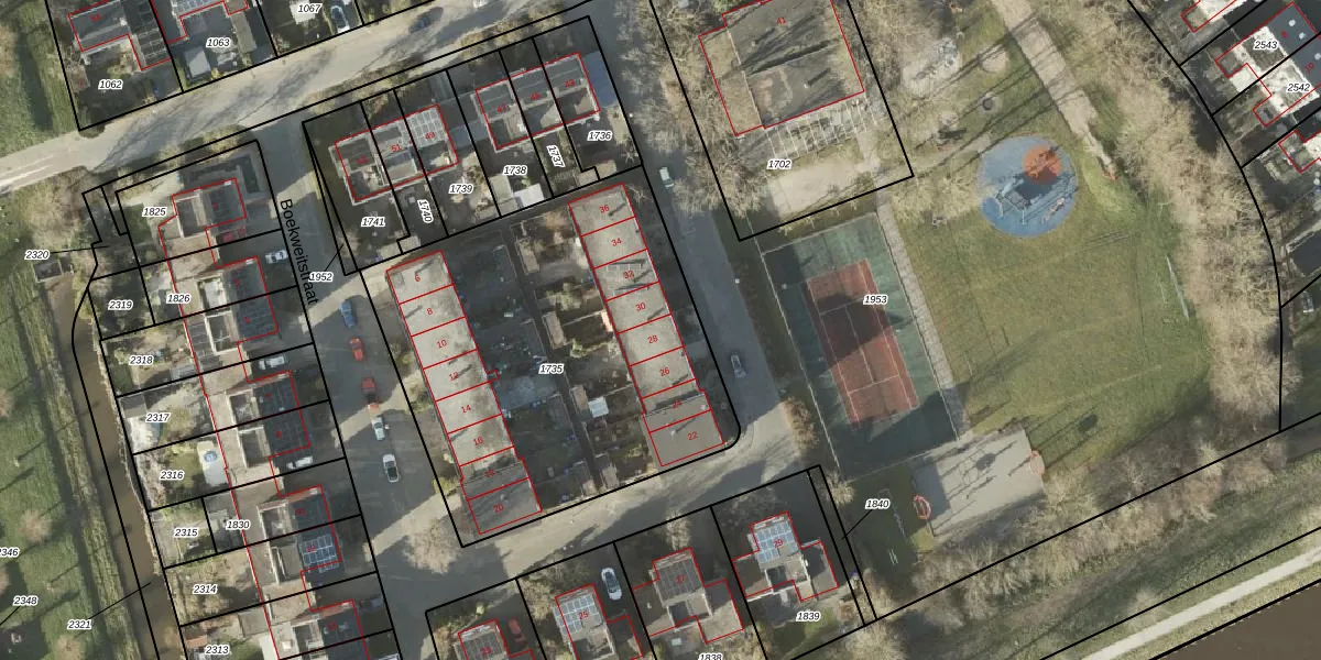 Het perceel waarop Boekweitstraat 28 staat heeft een oppervlakte van 2044 m². Dit is een zeer groot perceel. De perceeloppervlakte wordt geregistreerd door het Kadaster. Gedetailleerde informatie over de maten van dit perceel kunt u vinden in het rapport Kadastrale kaart met maatvoering van Boekweitstraat 28.