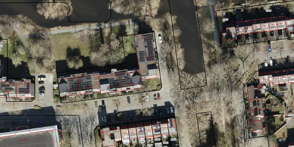 Het perceel waarop Boelemaheerd 117 staat heeft een oppervlakte van 1877 m². Dit is een zeer groot perceel. De perceeloppervlakte wordt geregistreerd door het Kadaster. Gedetailleerde informatie over de maten van dit perceel kunt u vinden in het rapport Kadastrale kaart met maatvoering van Boelemaheerd 117.