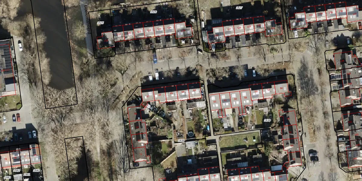 Boelemaheerd 64 is gelegen op kadastraal perceel GNG01AB1439. Deze kadastrale aanduiding is uniek en wordt gebruikt door het Kadaster om eigendomsrechten en andere zakelijke rechten vast te leggen. Het perceel maakt onderdeel uit van de kadastrale gemeente Groningen.