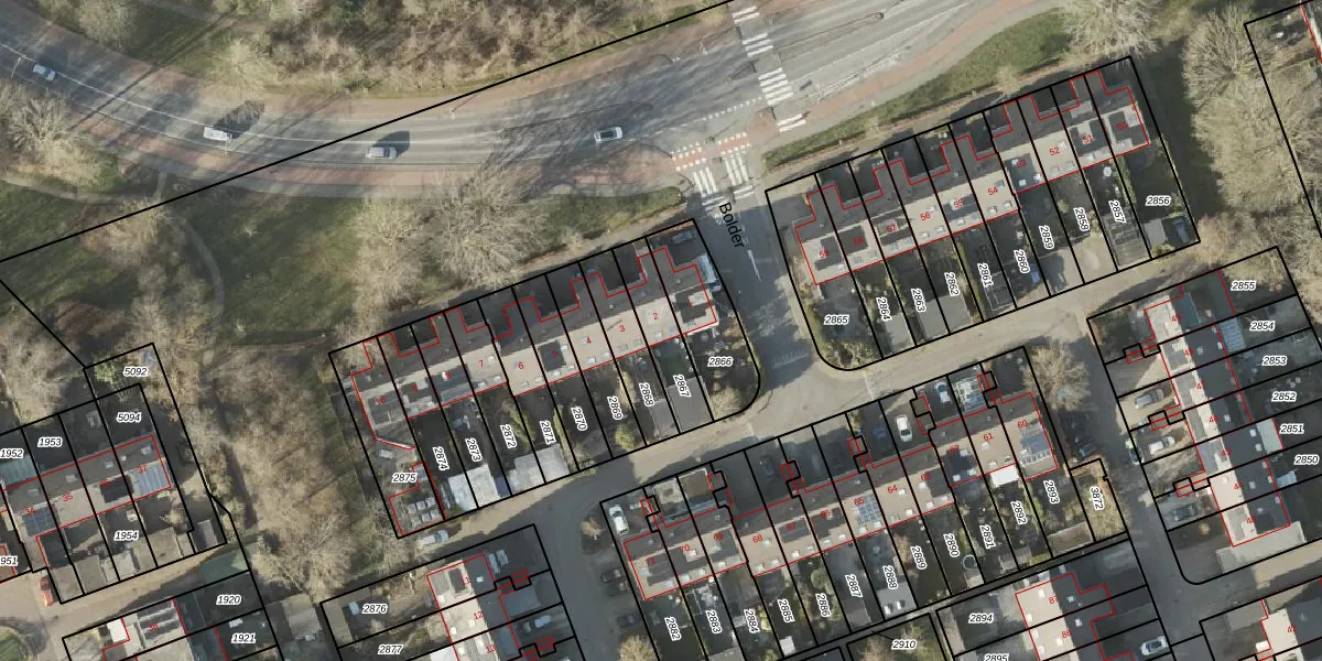 Het perceel waarop Bolder 2 staat heeft een oppervlakte van 162 m². Dit is een middelgroot perceel. De perceeloppervlakte wordt geregistreerd door het Kadaster. Gedetailleerde informatie over de maten van dit perceel kunt u vinden in het rapport Kadastrale kaart met maatvoering van Bolder 2.