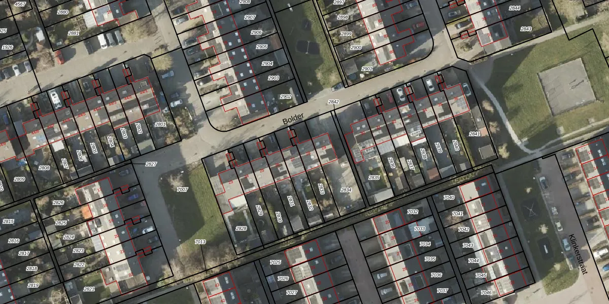 Het perceel waarop Bolder 28 staat heeft een oppervlakte van 182 m². Dit is een middelgroot perceel. De perceeloppervlakte wordt geregistreerd door het Kadaster. Gedetailleerde informatie over de maten van dit perceel kunt u vinden in het rapport Kadastrale kaart met maatvoering van Bolder 28.