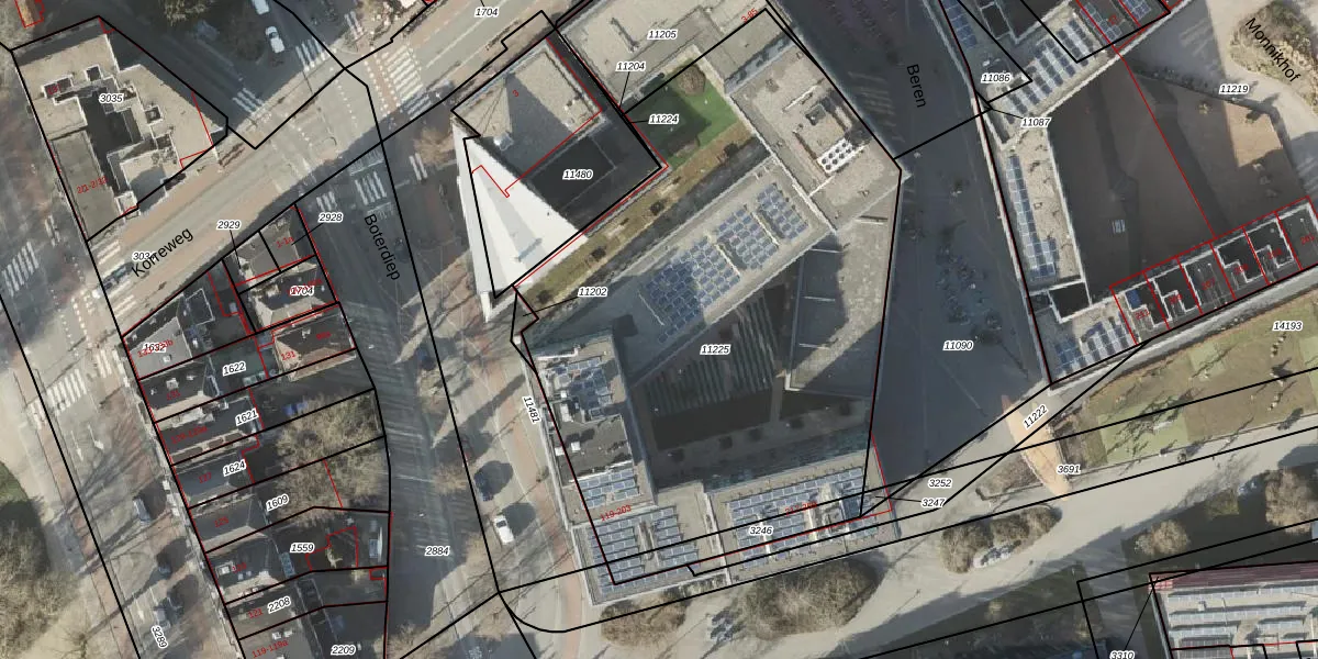 Het perceel waarop het adres ligt is GNG00-A-11225. De afkorting 'GNG00' staat voor kadastrale gemeente Groningen. De oppervlakte van het perceel is 3212 m². Dat is groter dan gemiddeld in Groningen, waar de gemiddelde perceeloppervlakte op 770,7 m² ligt. Het grootste perceel in de kadastrale gemeente is 31,8 ha. Het kleinste perceel heeft een oppervlakte van 0 m². Er zijn 104 adressen aanwezig op het perceel. De huidige grenzen van het perceel zijn digitaal in de Basisregistratie Kadaster (BRK) geregistreerd op 07-04-2004.