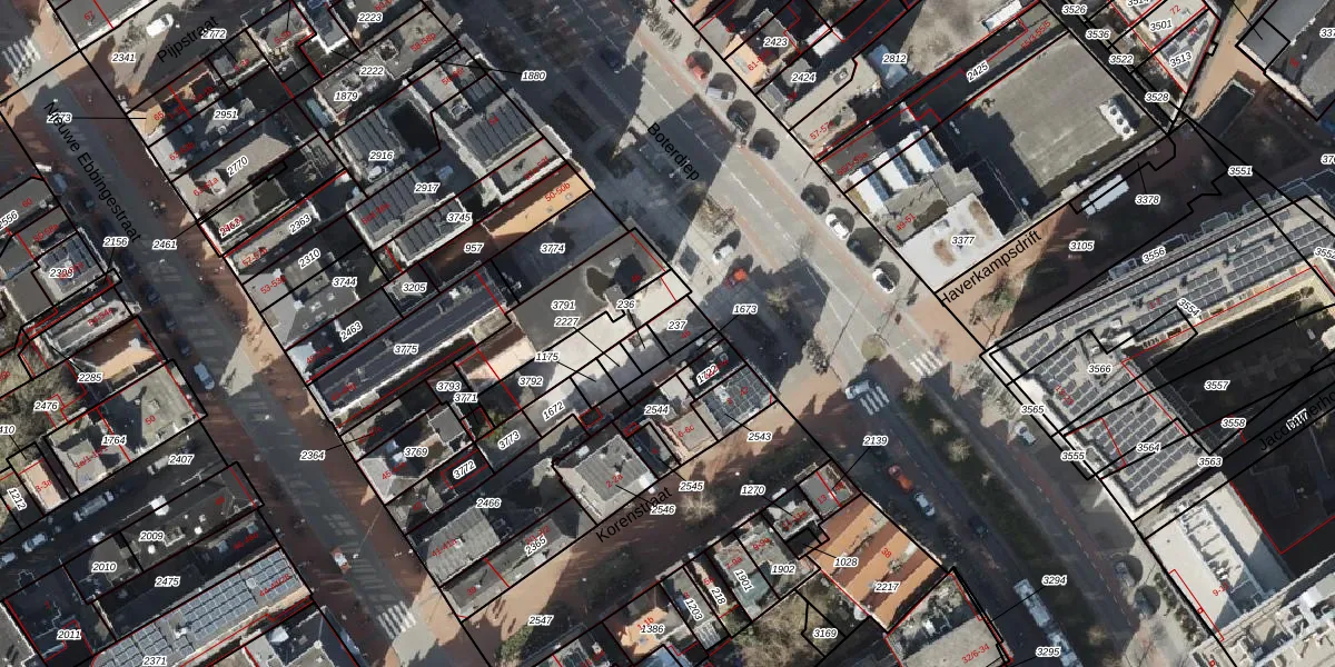 Het adres ligt op het perceel GNG00-F-237, dat zich in de kadastrale gemeente Groningen bevindt. Het perceel is kleiner dan gemiddeld in Groningen. Het perceel is 48 m² groot, terwijl het gemiddelde ligt op 772,77 m². De grootste perceeloppervlakte in de kadastrale gemeente is 31,8 ha. De kleinste oppervlakte bedraagt 0 m². Op het perceel liggen in totaal 7 adressen. De huidige grenzen van het perceel zijn digitaal in de Basisregistratie Kadaster (BRK) geregistreerd op 23-03-2006.