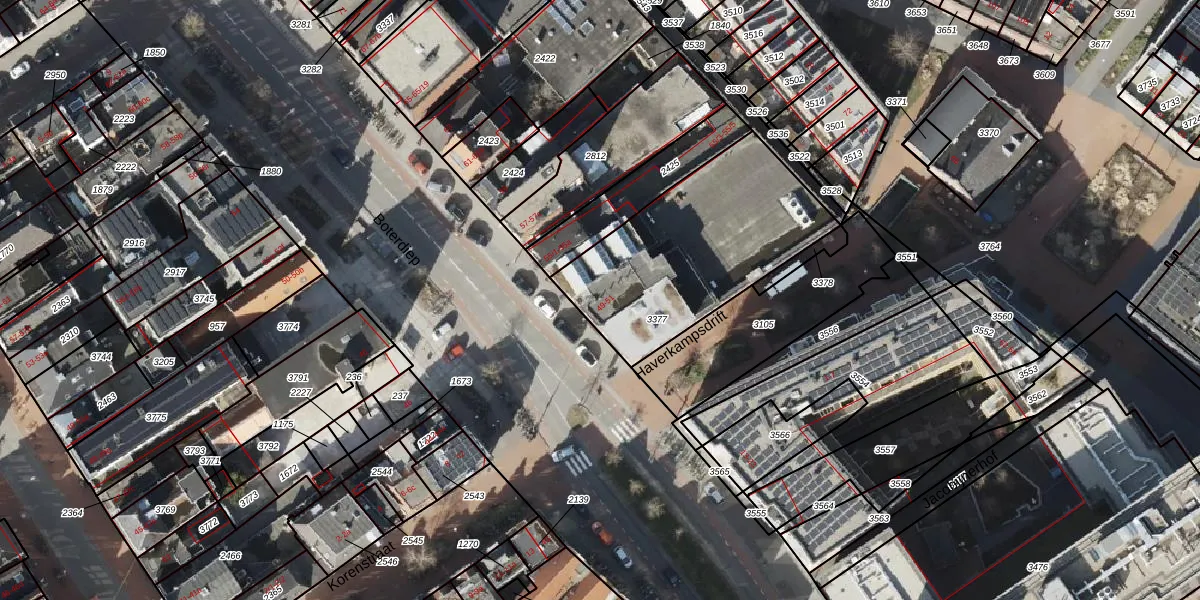 Het adres ligt op het perceel GNG00-F-3377, dat zich in de kadastrale gemeente Groningen bevindt. De oppervlakte van het perceel is 856 m². Dat is groter dan gemiddeld in Groningen, waar de gemiddelde perceeloppervlakte op 771,11 m² ligt. De grootste perceeloppervlakte in de kadastrale gemeente is 31,8 ha. De kleinste oppervlakte bedraagt 0 m². Er zijn 12 adressen aanwezig op het perceel. De huidige grenzen van het perceel zijn digitaal in de Basisregistratie Kadaster (BRK) geregistreerd op 22-12-2022.