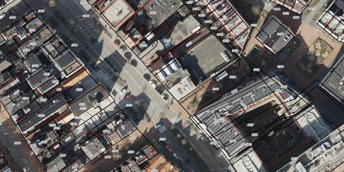 Het adres ligt op het perceel GNG00-F-3377, dat zich in de kadastrale gemeente Groningen bevindt. De oppervlakte van het perceel is 856 m². Dat is groter dan gemiddeld in Groningen, waar de gemiddelde perceeloppervlakte op 771,11 m² ligt. De grootste perceeloppervlakte in de kadastrale gemeente is 31,8 ha. De kleinste oppervlakte bedraagt 0 m². Er zijn 12 adressen aanwezig op het perceel. In de Basisregistratie Kadaster (BRK) werden de grenzen van het perceel geregistreerd op 22-12-2022.