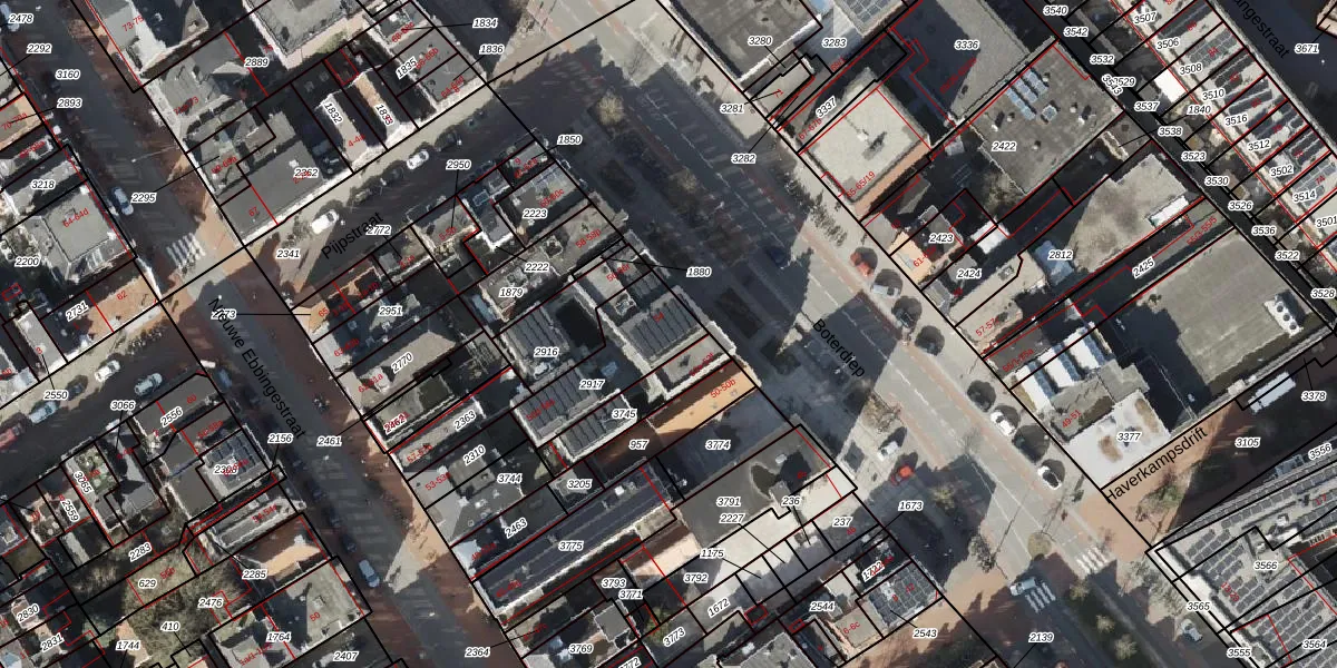 Het adres is gelegen op perceel 2917 in de sectie F en de kadastrale gemeente Groningen. De kadastrale aanduiding is aldus GNG00-F-2917. Het perceel is kleiner dan gemiddeld in Groningen. Het perceel is 284 m² groot, terwijl het gemiddelde ligt op 772,77 m². De grootste perceeloppervlakte in de kadastrale gemeente is 31,8 ha. De kleinste oppervlakte bedraagt 0 m². Op het perceel zijn 7 adressen aanwezig. De huidige grenzen van het perceel zijn digitaal in de Basisregistratie Kadaster (BRK) geregistreerd op 31-10-2019.