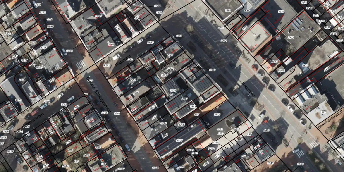 Het adres is gelegen op perceel 2916 in de sectie F en de kadastrale gemeente Groningen. De kadastrale aanduiding is aldus GNG00-F-2916. Het perceel is kleiner dan gemiddeld in Groningen. Het perceel is 195 m² groot, terwijl het gemiddelde ligt op 772,77 m². De grootste perceeloppervlakte in de kadastrale gemeente is 31,8 ha. De kleinste oppervlakte bedraagt 0 m². Op het perceel liggen in totaal 9 adressen. De huidige grenzen van het perceel zijn digitaal in de Basisregistratie Kadaster (BRK) geregistreerd op 23-03-2006.