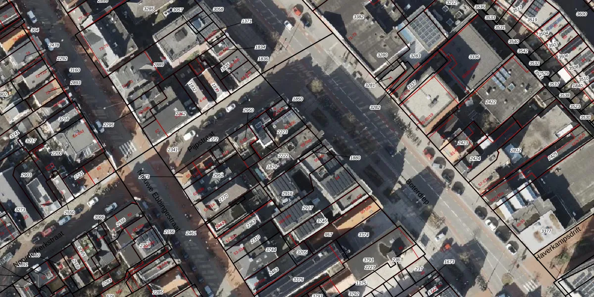 Het adres is gelegen op perceel 1879 in de sectie F en de kadastrale gemeente Groningen. De kadastrale aanduiding is aldus GNG00-F-1879. De gemiddelde perceelgrootte in Groningen is 772,77 m². Dit perceel is kleiner: de perceeloppervlakte bedraagt 193 m². De grootste perceeloppervlakte in de kadastrale gemeente is 31,8 ha. De kleinste oppervlakte bedraagt 0 m². Op het perceel liggen in totaal 13 adressen. De huidige grenzen van het perceel zijn digitaal in de Basisregistratie Kadaster (BRK) geregistreerd op 23-03-2006.