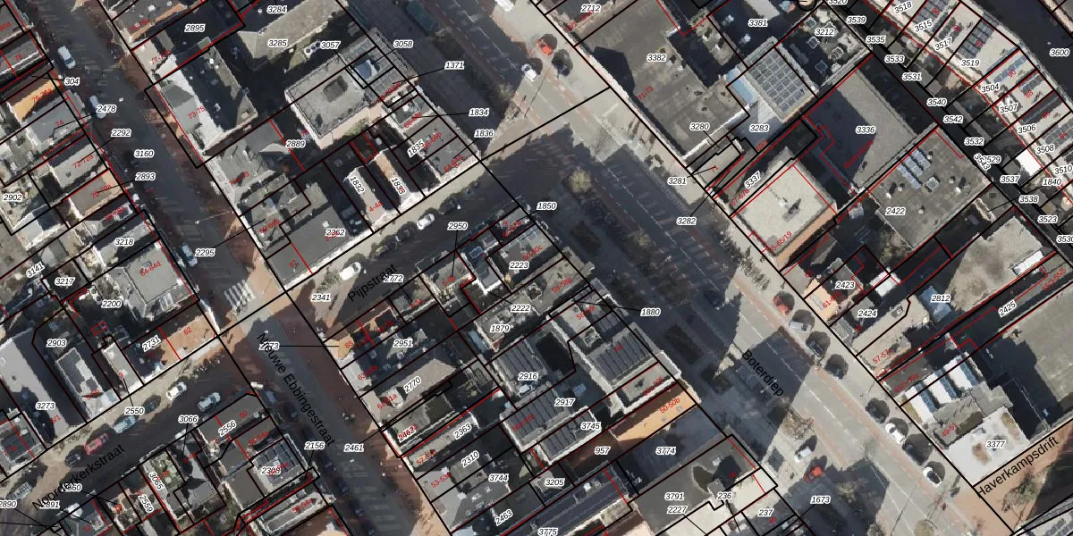Het perceel waarop Boterdiep 60 staat heeft een oppervlakte van 93 m². Dit is een klein perceel. De perceeloppervlakte wordt geregistreerd door het Kadaster. Gedetailleerde informatie over de maten van dit perceel kunt u vinden in het rapport Kadastrale kaart met maatvoering van Boterdiep 60.