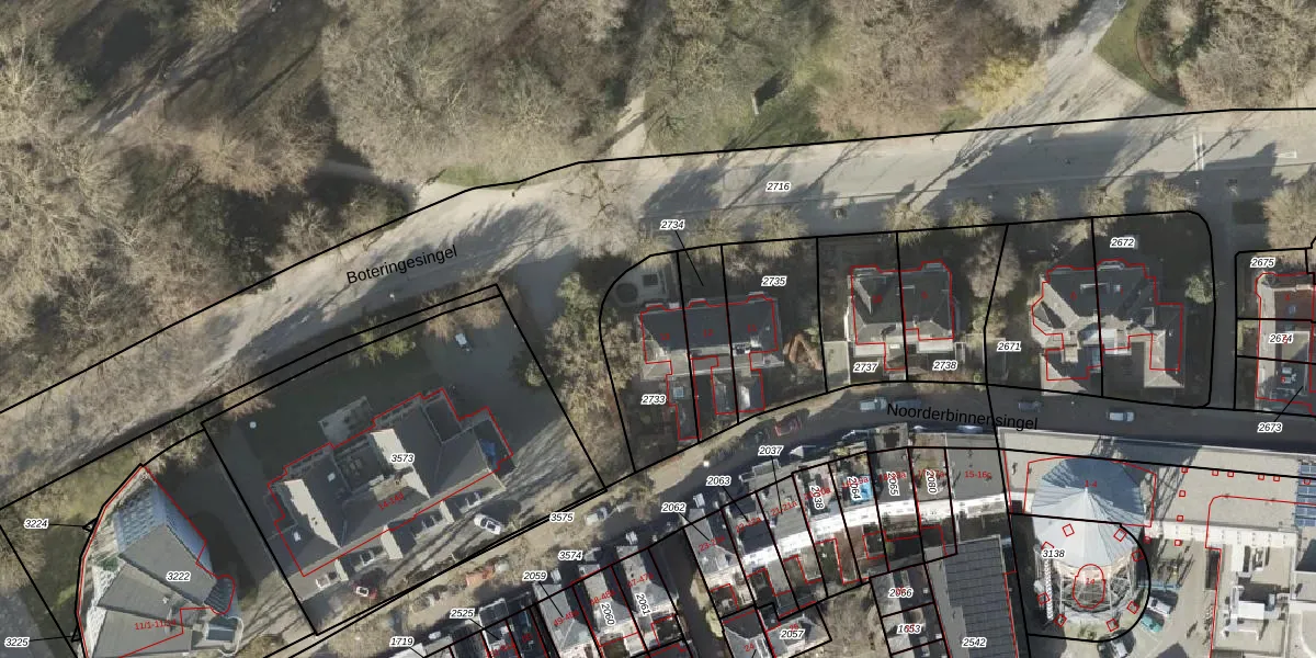 Boteringesingel 13 is gelegen op kadastraal perceel GNG00F2733. Deze kadastrale aanduiding is uniek en wordt gebruikt door het Kadaster om eigendomsrechten en andere zakelijke rechten vast te leggen. Het perceel maakt onderdeel uit van de kadastrale gemeente Groningen.